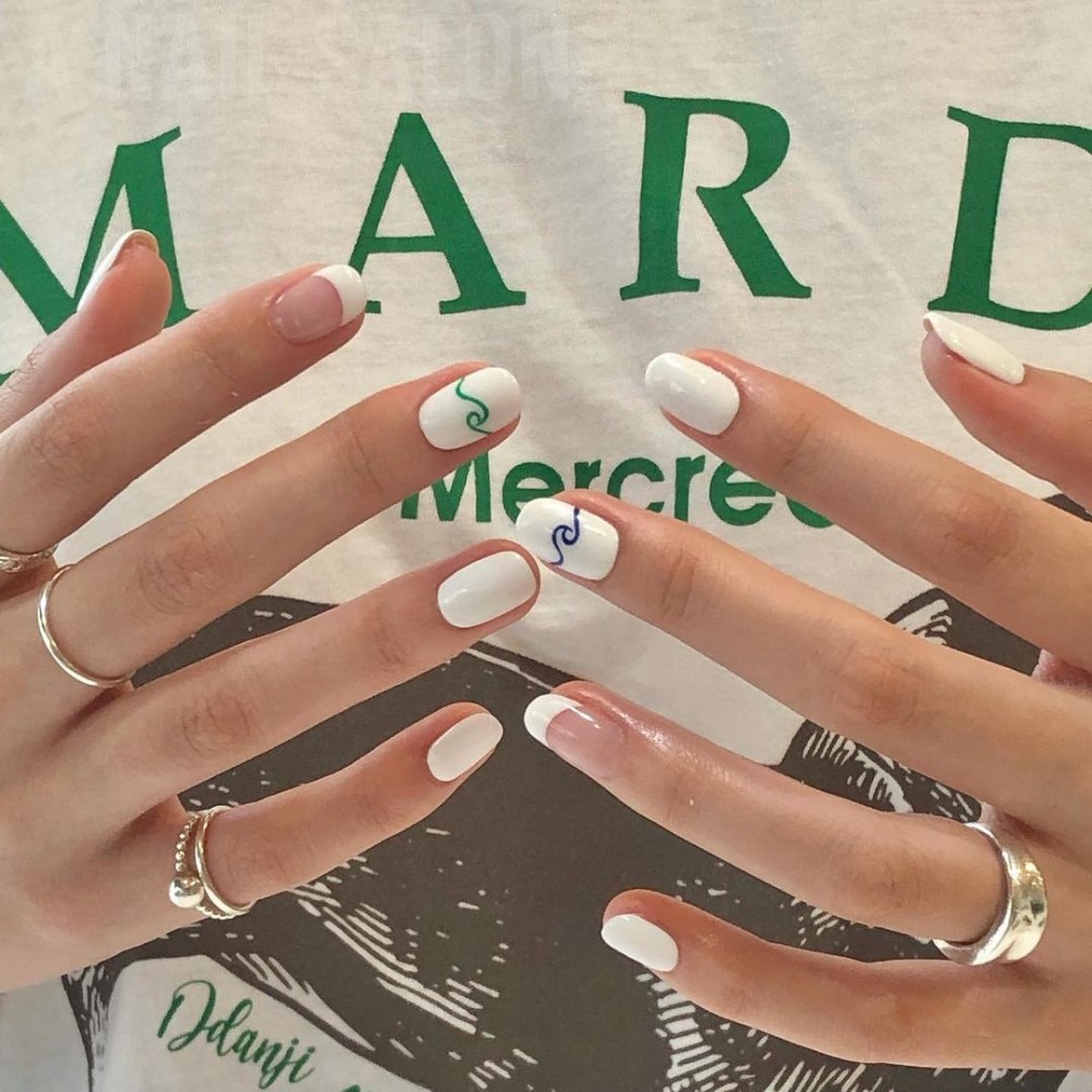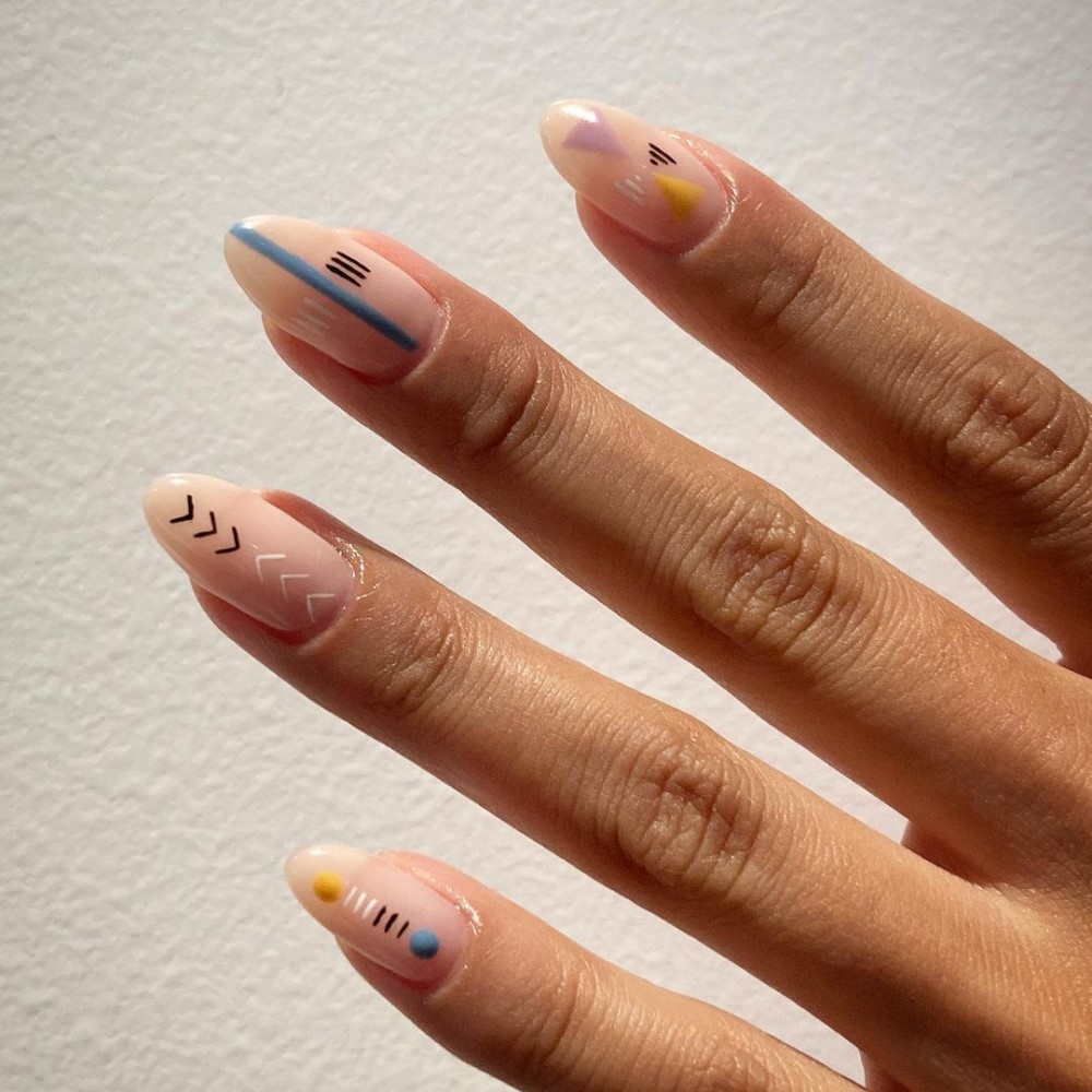 Abstract illustrations are a great way to add subtle hints of colour to your nails for autumn 2021.