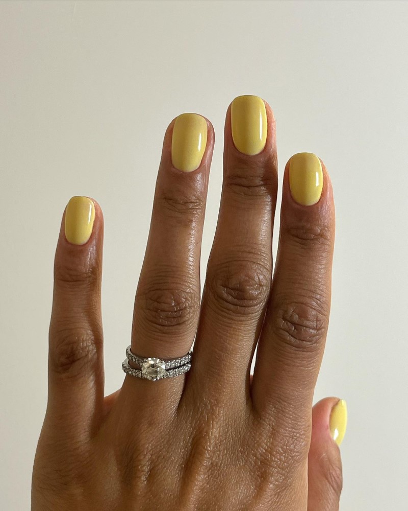 If it’s cloudy where you are, painting your nails with bright yellow polish is one way to lift your mood. Soft pastel hues convey a sense of playfulness, while punchy shades like canary yellow add a bit of edgy to your look.