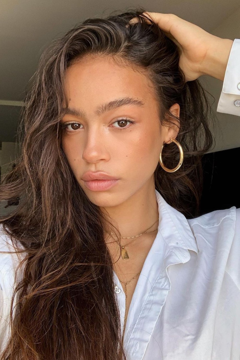 After considerably less plucking in 2020, you’re probably more than equipped for the brushed-up brows trend. For 2021, brushed-up brows encompass feathered brows with a little more density and texture. Brow products with a natural payoff will be the easiest to use to achieve this look; think subtle hair-like strokes or tinted brow gels that create the illusion of thickness.