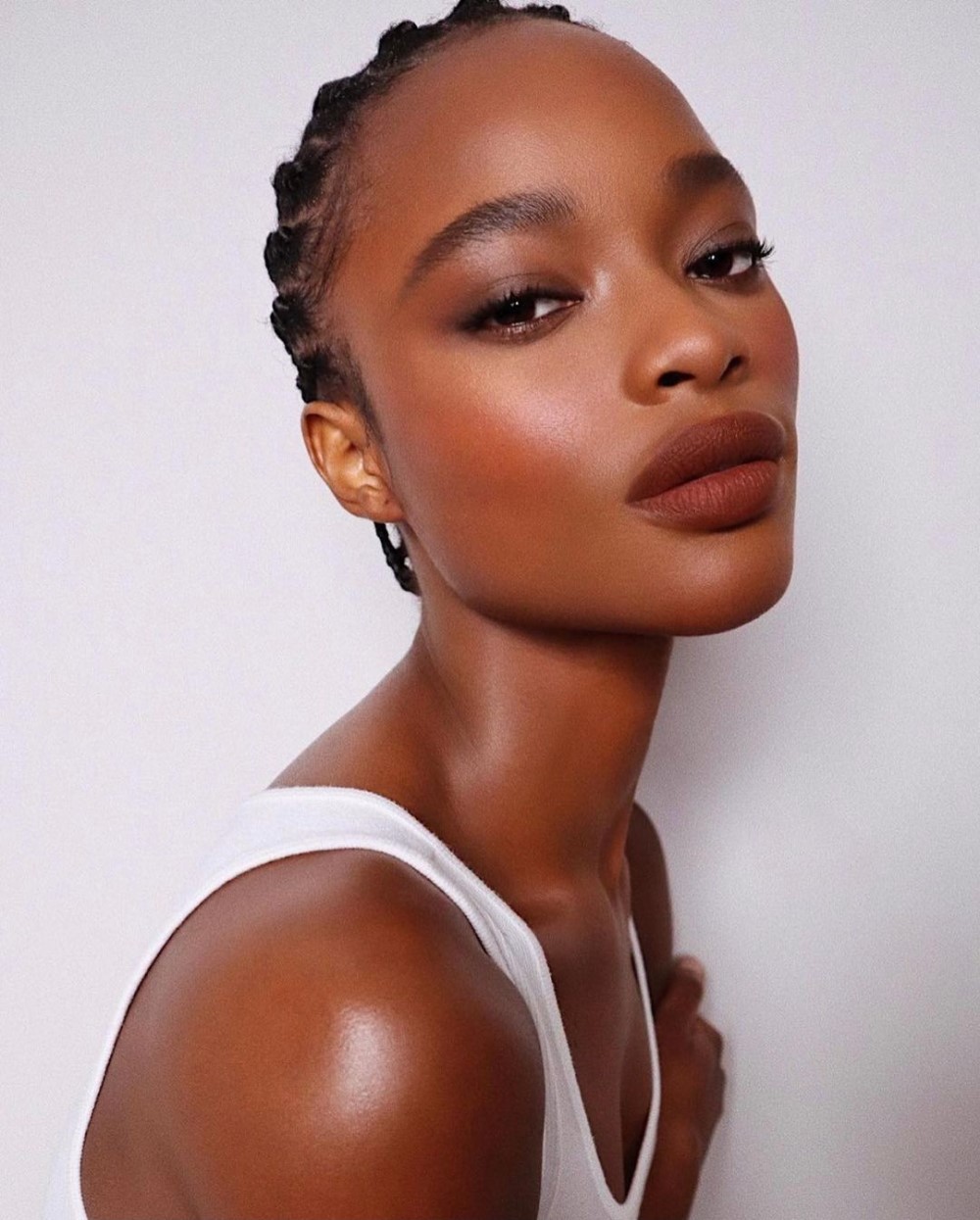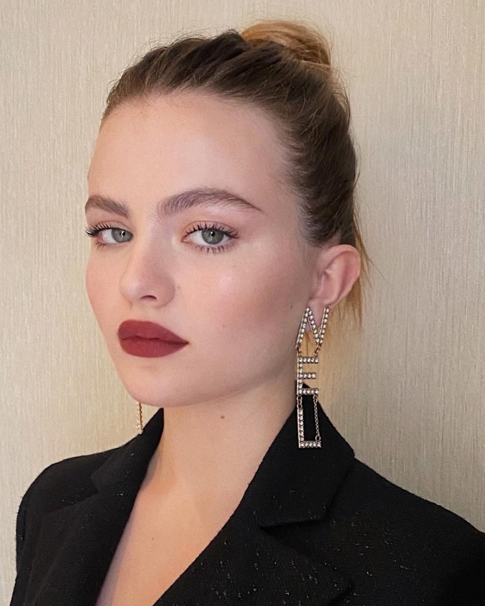 Brick-red lips are a favourite for Autumn 2021. This shade of red with a hint of brown is the easiest way to pull off a classic deep red, especially for daytime. Brick-red lips are also a nod to the 1990s, so why not go the whole hog and evoke ’90s supermodel glam by teaming brick-red lips with a soft smokey eye.