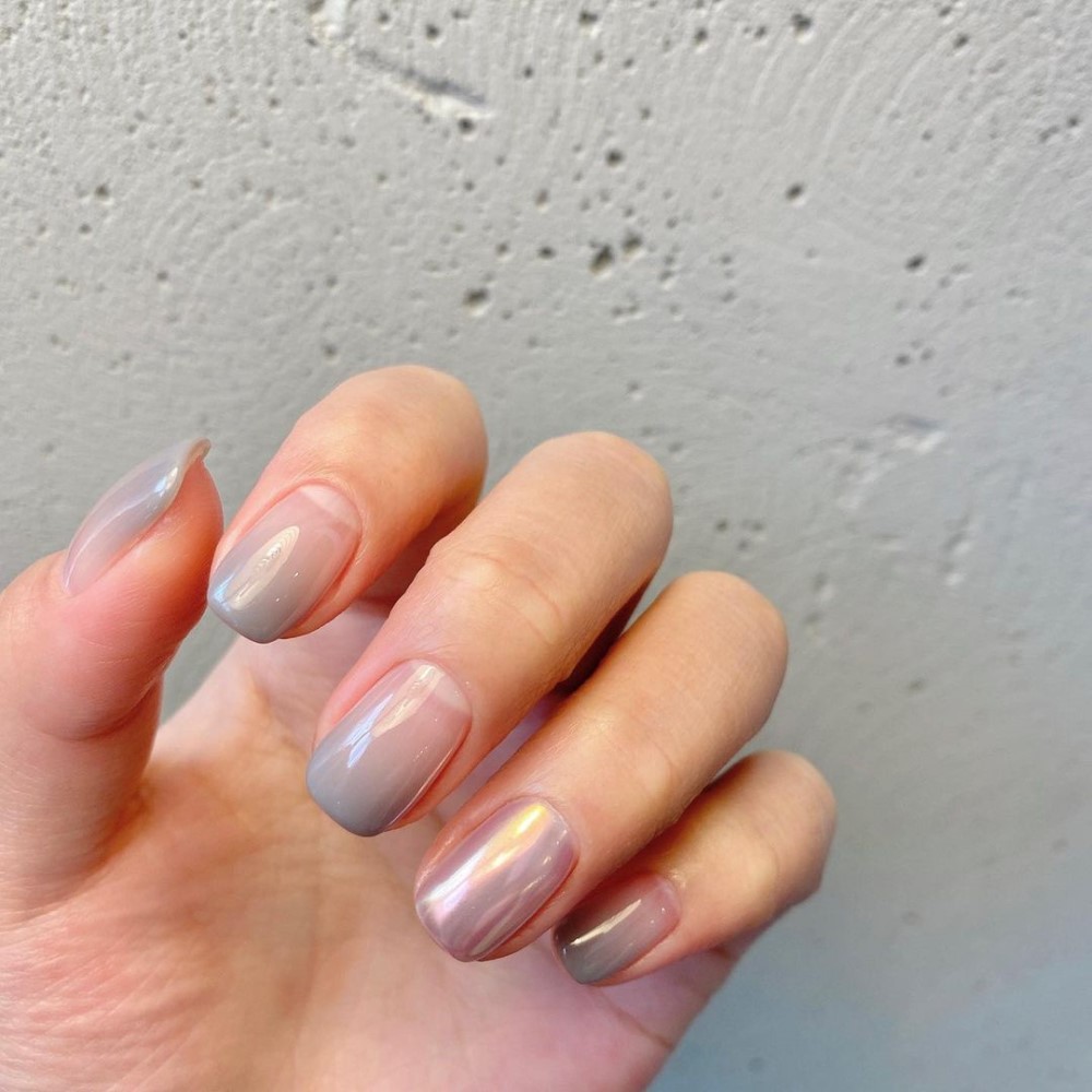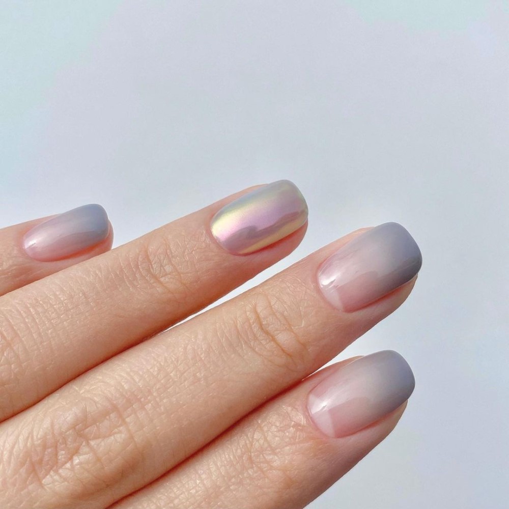 For subtle glamour, mix pearlescent accent nails with a soft ombre colour.